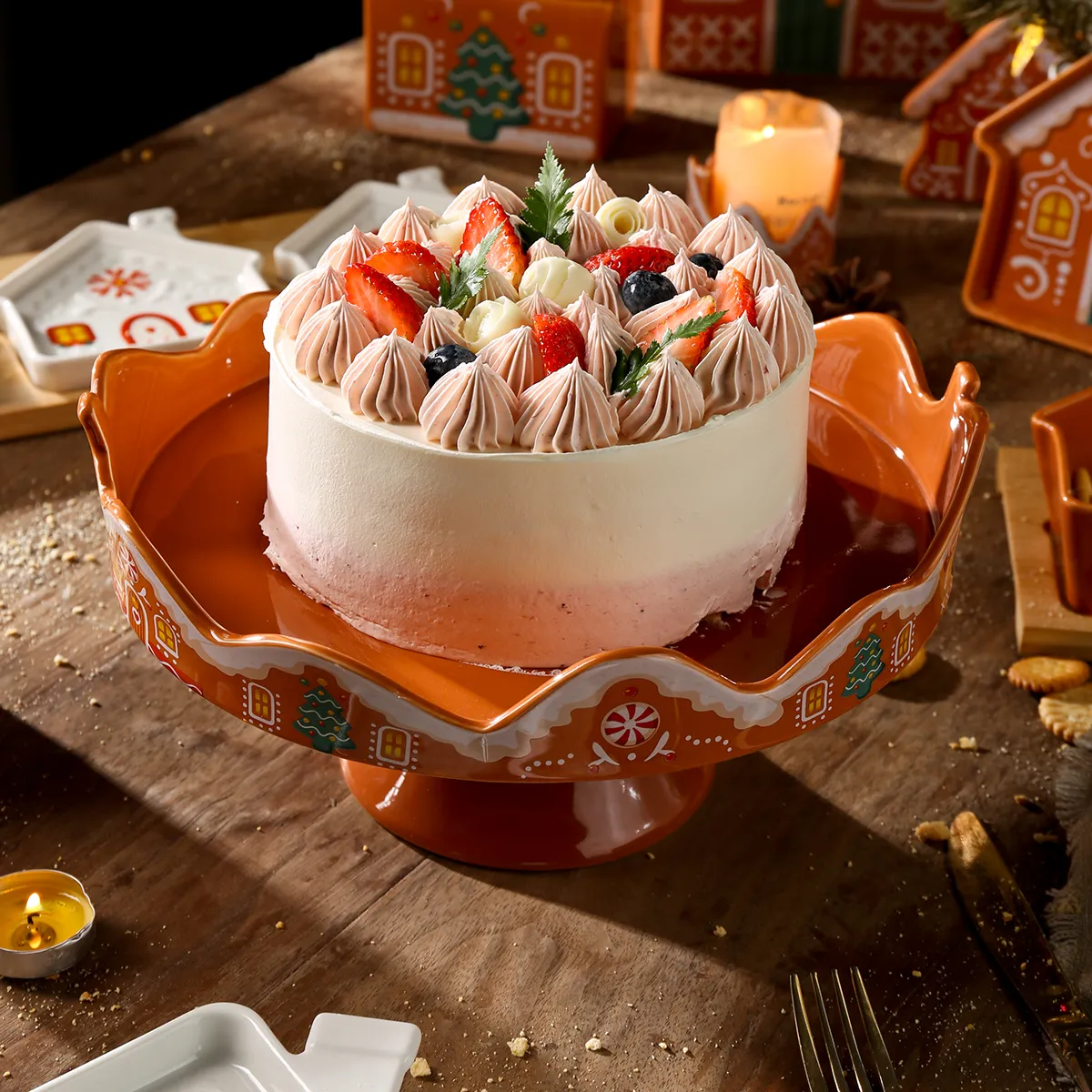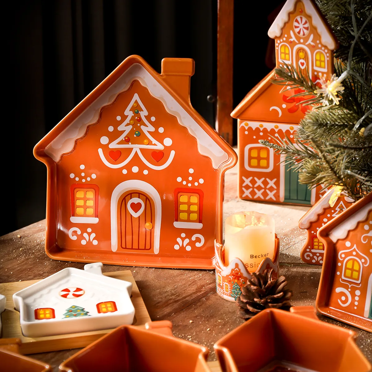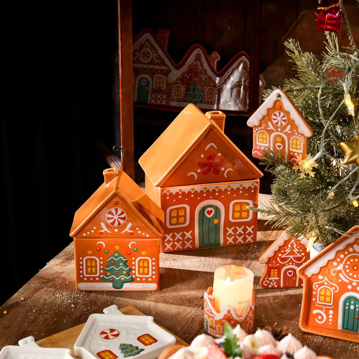 - موضوع مميز، مليء بأجواء احتفالية: تستخدم أواني الخزف التي نبيعها بالجملة بيت الزنجبيل المعروف عالميًا كنقطة انطلاق أساسية، مع نقوش بارزة ومنقوشة تصور بدقة عناصر عيد الميلاد مثل الحلوى والثلج.