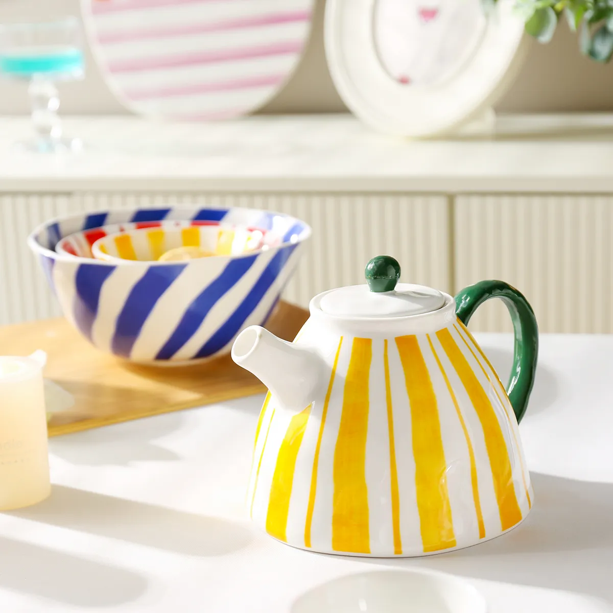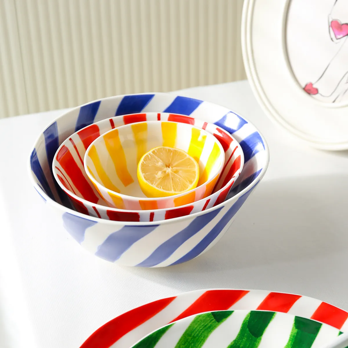 • The Uniqueness of Hand-Painted Craftsmanship: Each vibrant stripe in this wholesale salad serving bowl collection retains the natural texture of hand-painting; the colors are rich, vivid, and fade-resistant, ensuring that every single bowl possesses its own unique artisanal details.