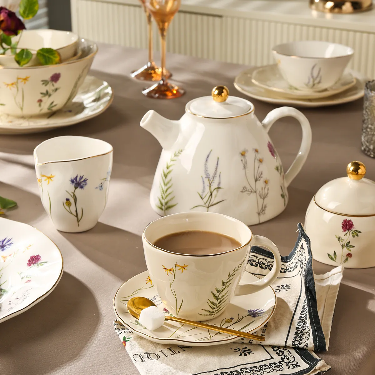 Elegant Wildflower Wholesale Coffee Tea Sets with Gold Rims