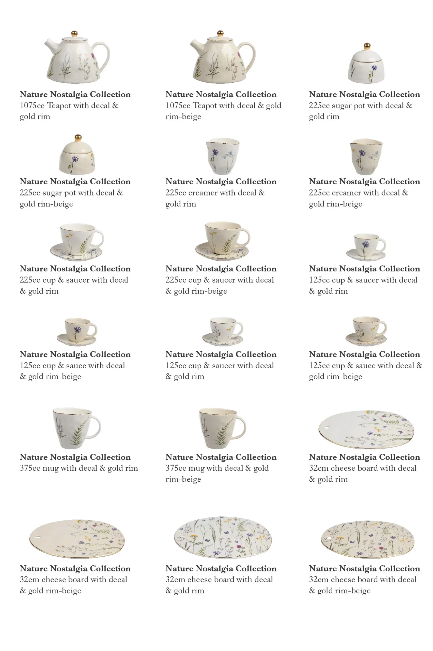 | Tipo de producto | Tetera de cerámica, azucarero, cremera, taza y platillo, taza |