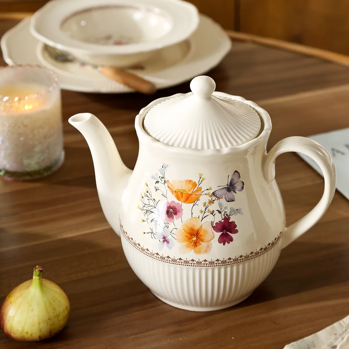 Welcome to purchase our crockery set wholesale. Our floral wholesale tableware series features exquisite hand-painted floral patterns, adorned with lifelike butterfly motifs, covering a full range of tableware including bowls, plates, cups, teapots, and cake stands.
