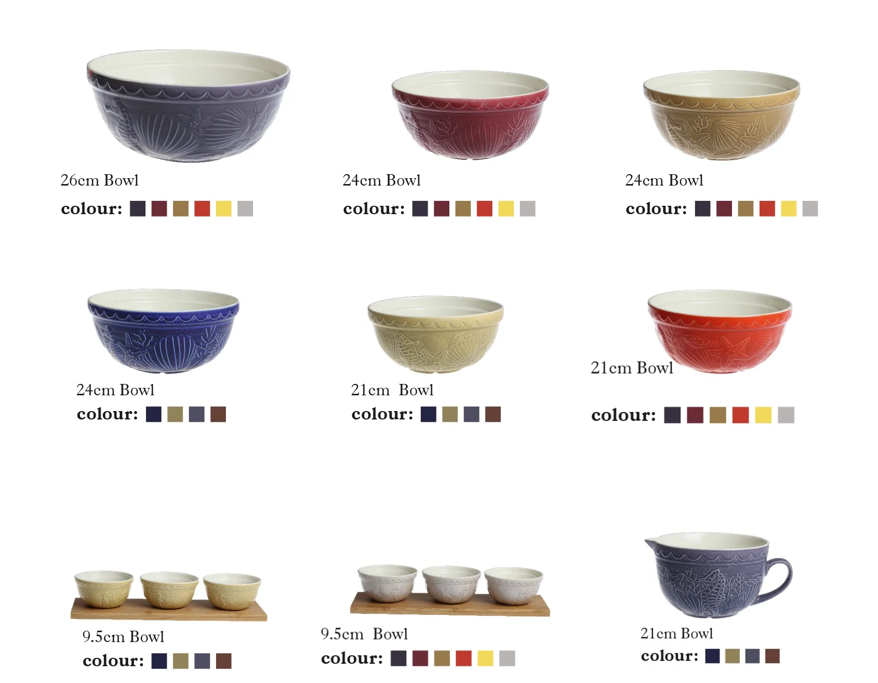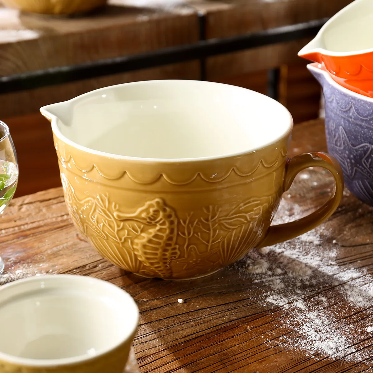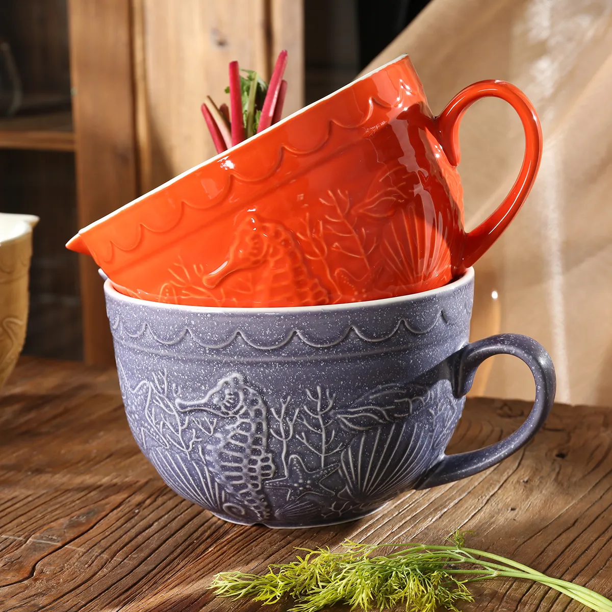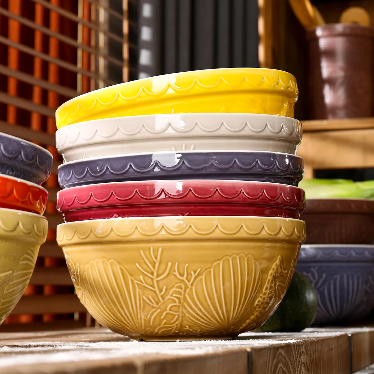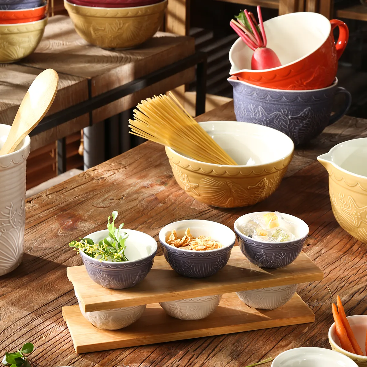 Welcome to purchase ceramic bowls in bulk. This wholesale serving bowl set is adorned with exquisite marine life relief patterns and comes in a variety of sizes and colors, making it ideal for restaurants, events, and home dining.