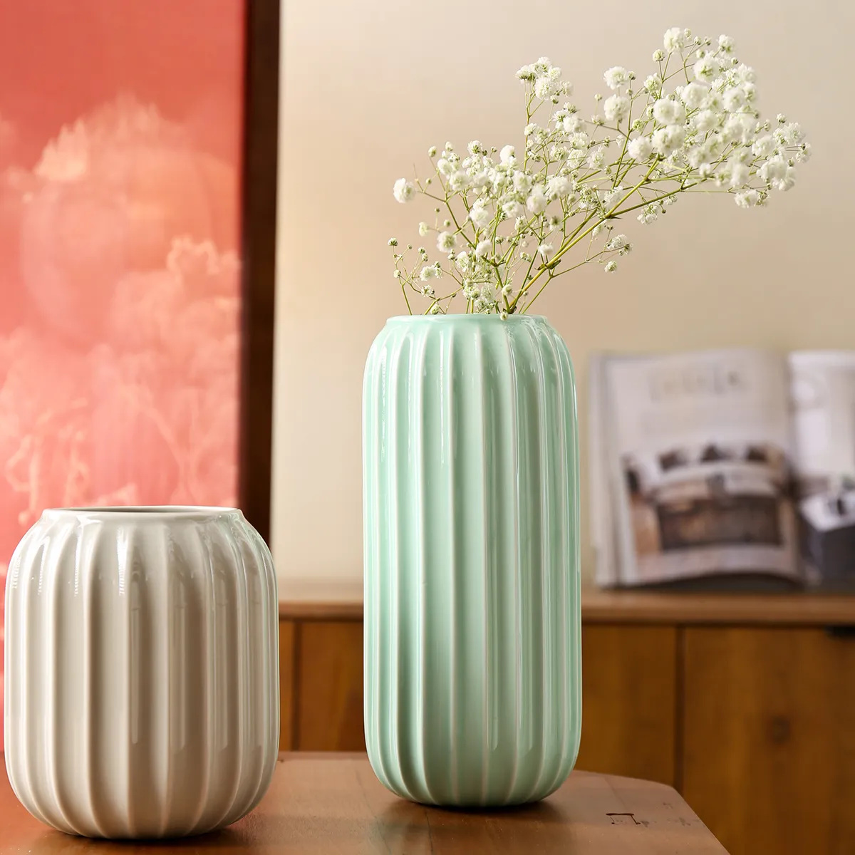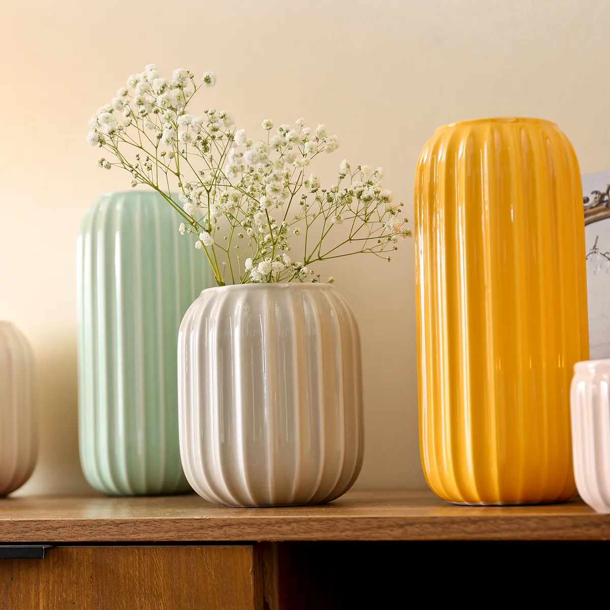 Welcome to purchase wholesale ceramic vases. Our Morandi-colored floral vases in bulk feature a minimalist vertical stripe design, a smooth and delicate glaze, and a simple yet versatile style, meeting the needs of various scenarios such as floral displays, home décor, and the gift market.