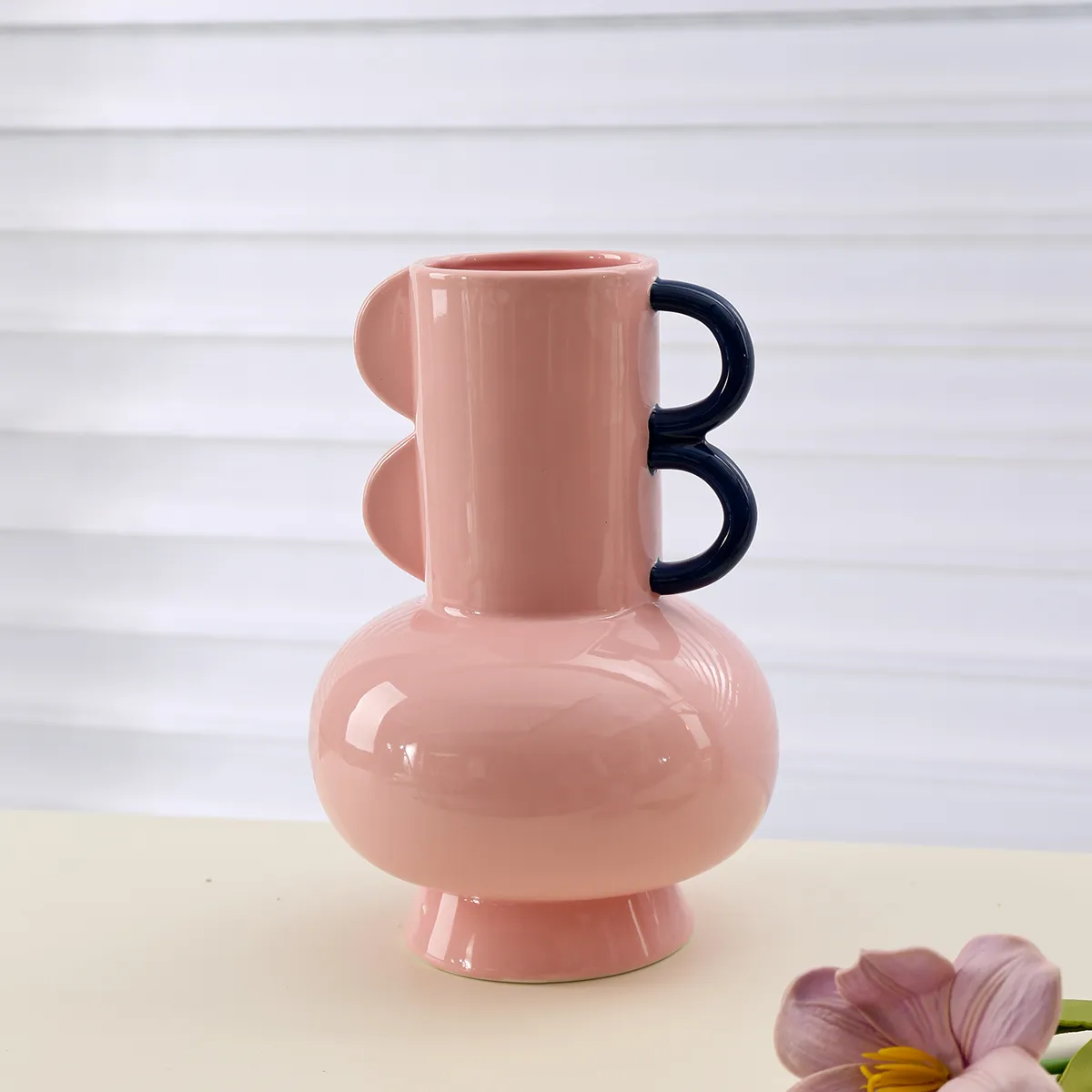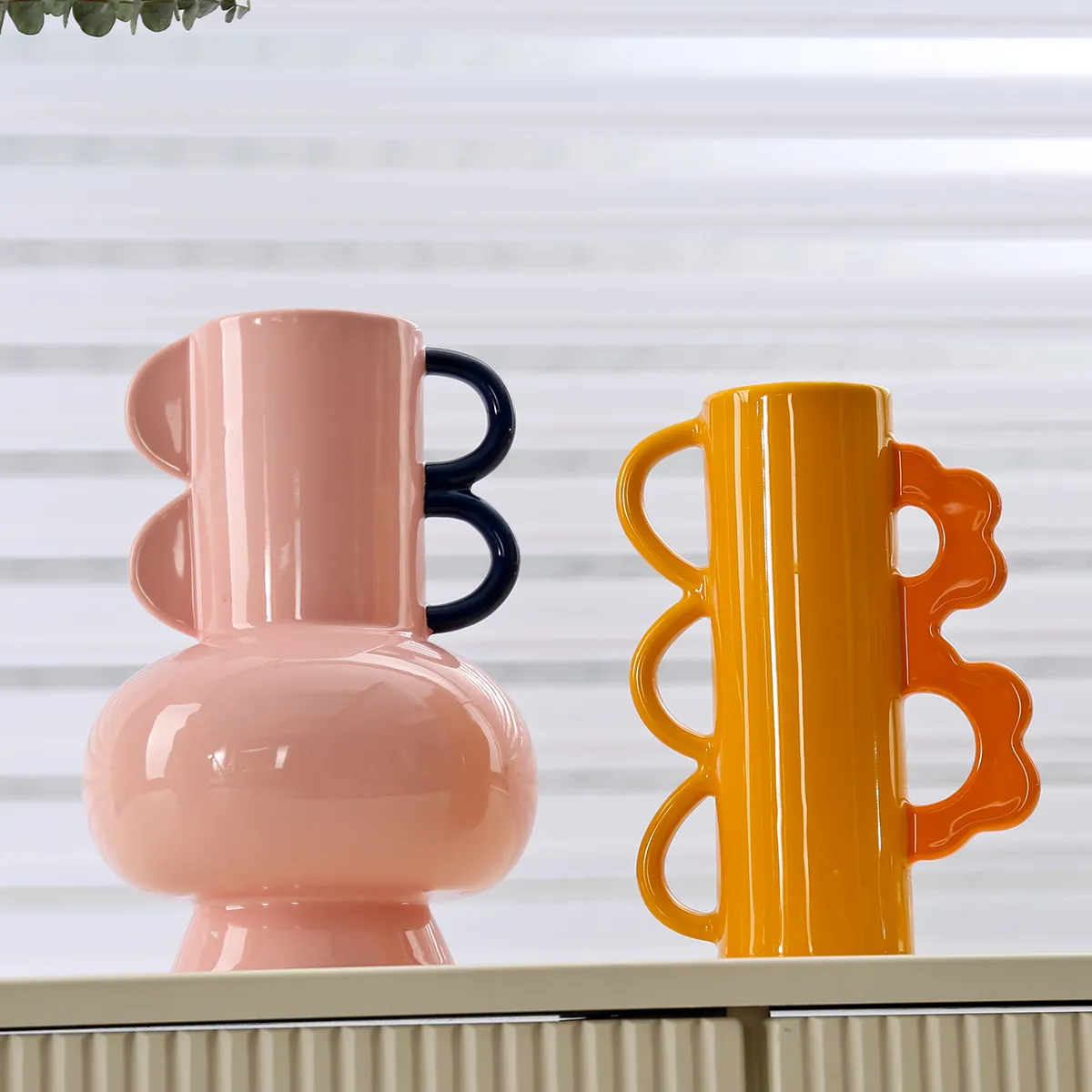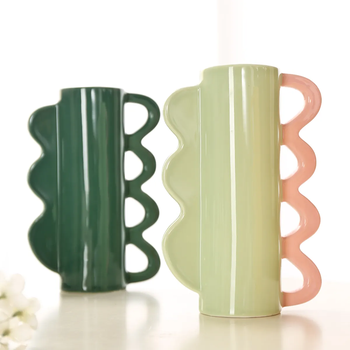 - Design-Driven: This wholesale flower vase series features unique wavy, ring, and spiral openwork handles, combined with bold color schemes and sculptural shapes.