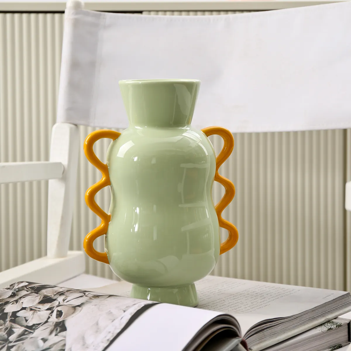 Find high-quality wholesale flower vase at LovingHome. Our floral vases in bulk feature wavy and spiral openwork handles and full-bodied shapes, using vibrant, highly saturated colors for a strong visual impact and a modern artistic feel.