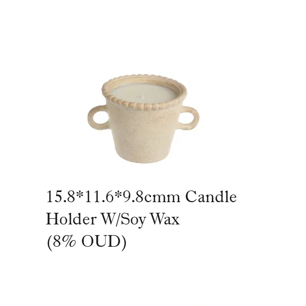 Welcome to purchase wholesale candle vessels. Our double-handled bulk candle containers combine aesthetics and practicality. The candles use a natural soy wax base and are infused with 8% agarwood essential oil, releasing a calming woody fragrance when lit.