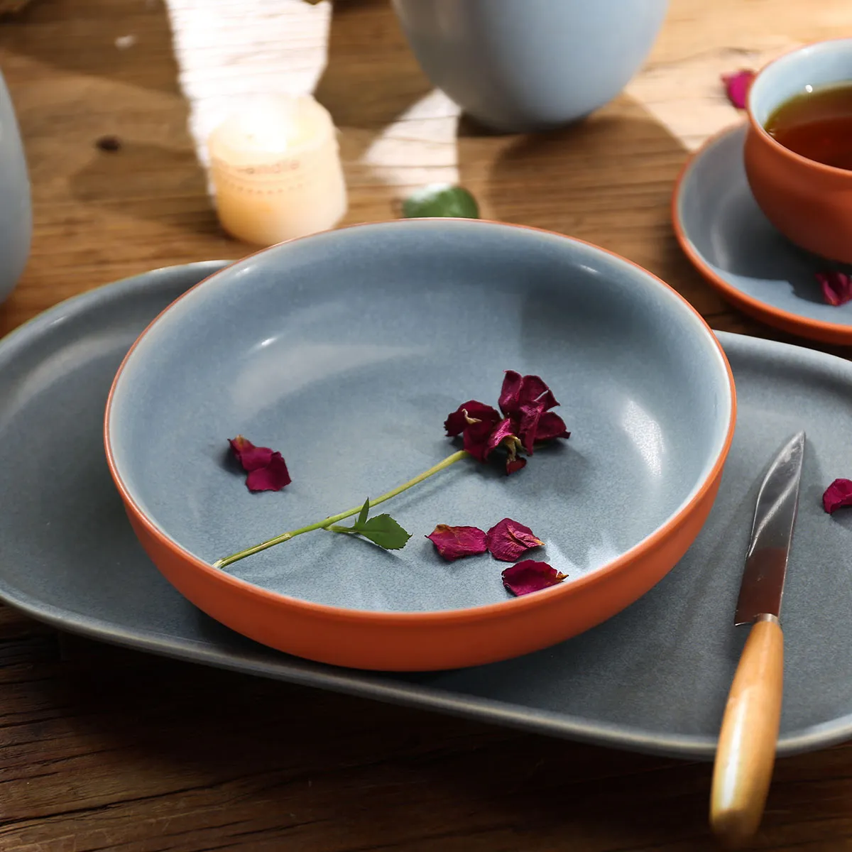 - Double-glazed design: These crockery plates wholesale feature a matte orange glaze exterior and a satin glaze interior, combining modern aesthetics with durability to ensure optimal presentation of food.