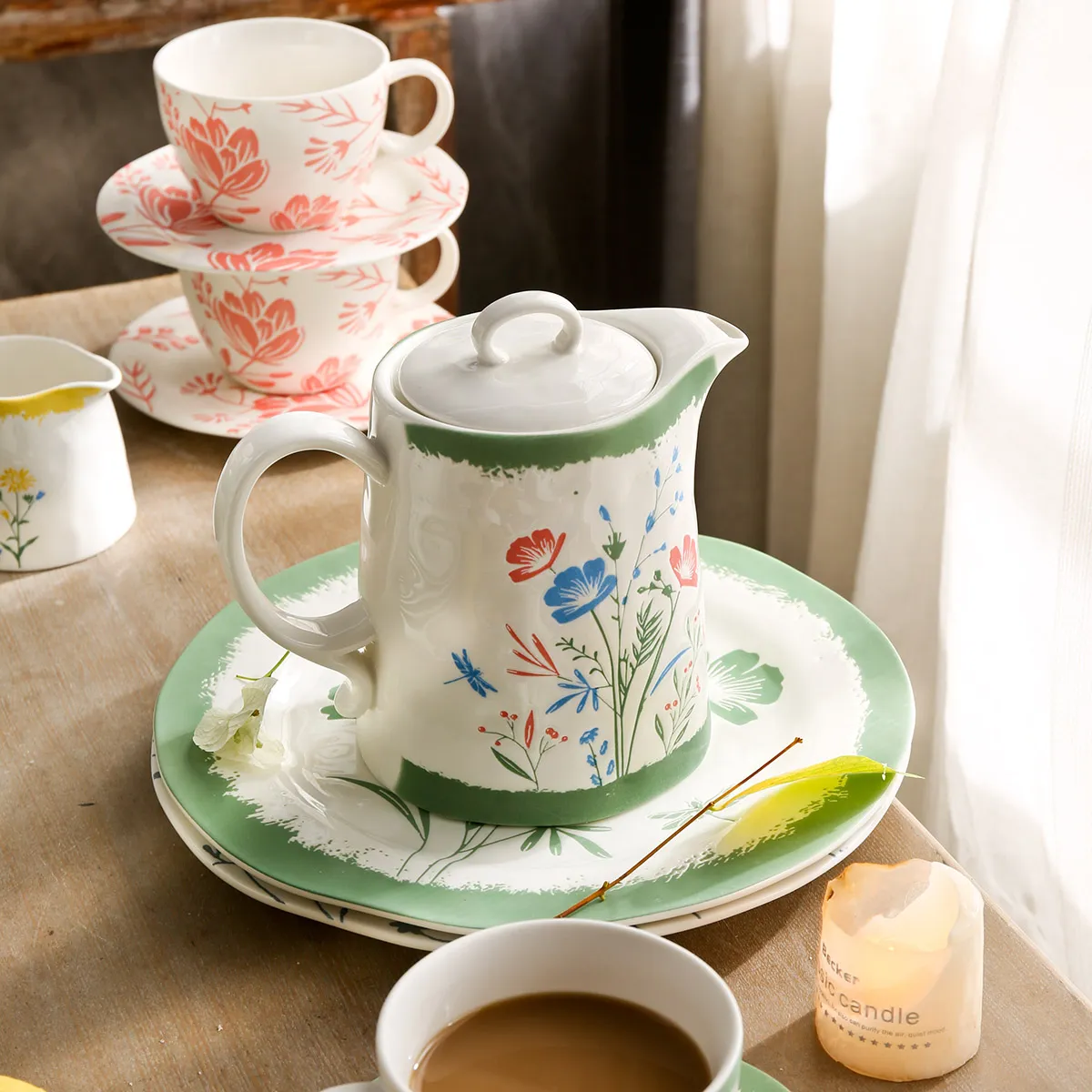 Wholesale Floral Tea Sets, Hand-Painted Ceramic Pot & Cups