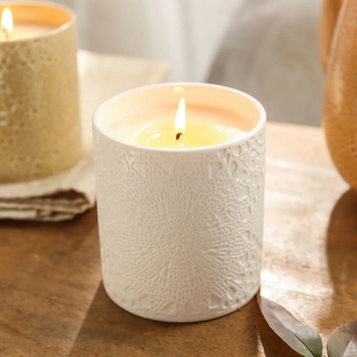 Lace Texture Candle Vessels Wholesale in Multiple Colors