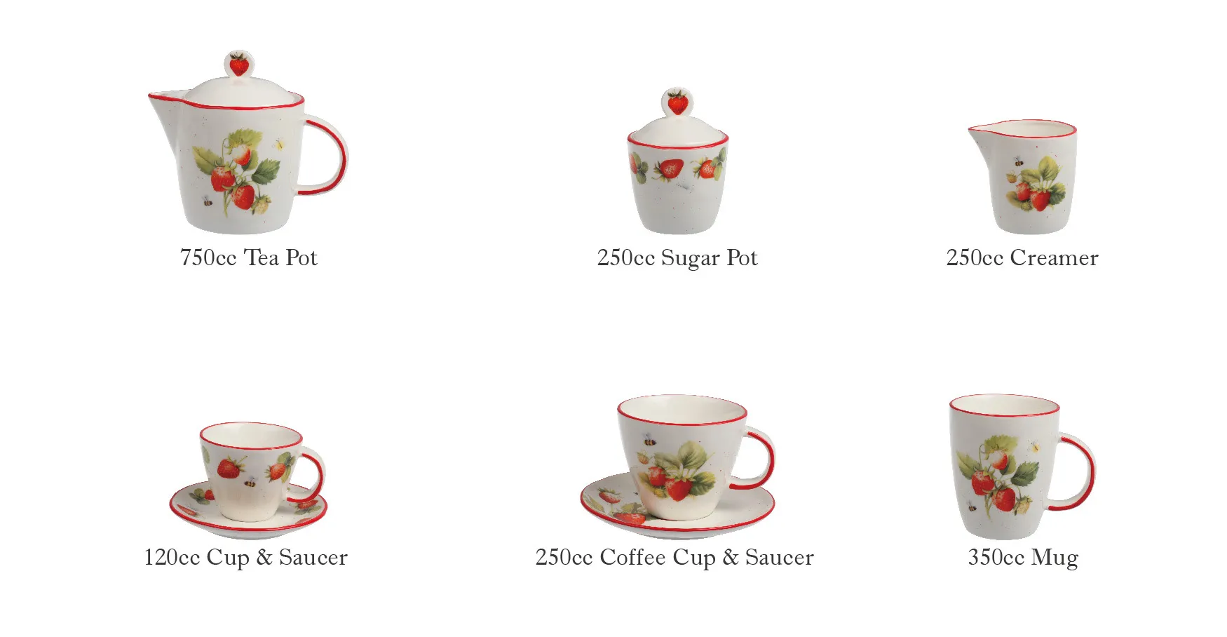 Wholesale English Tea Service Set, Strawberry-Themed Cup Set