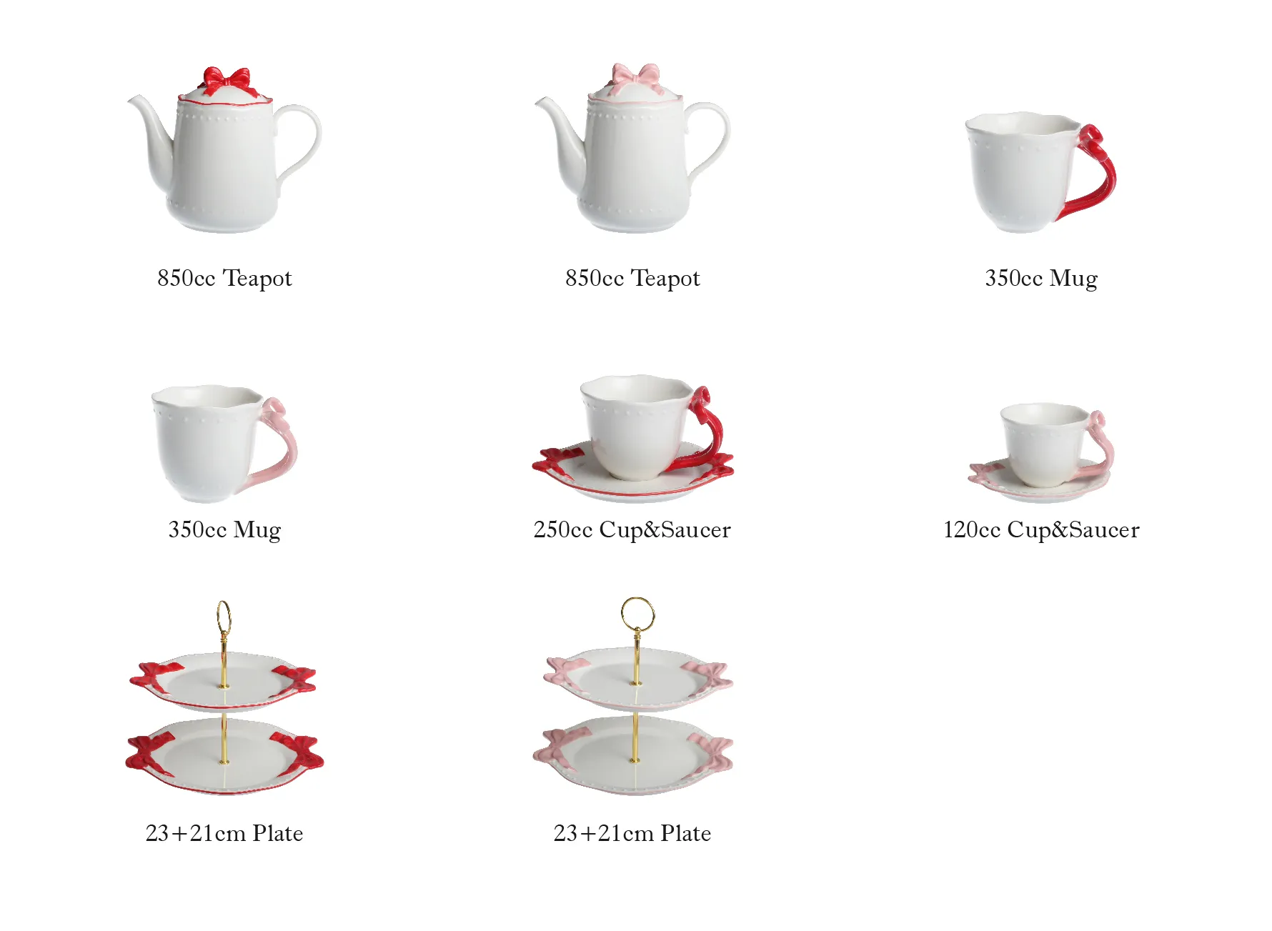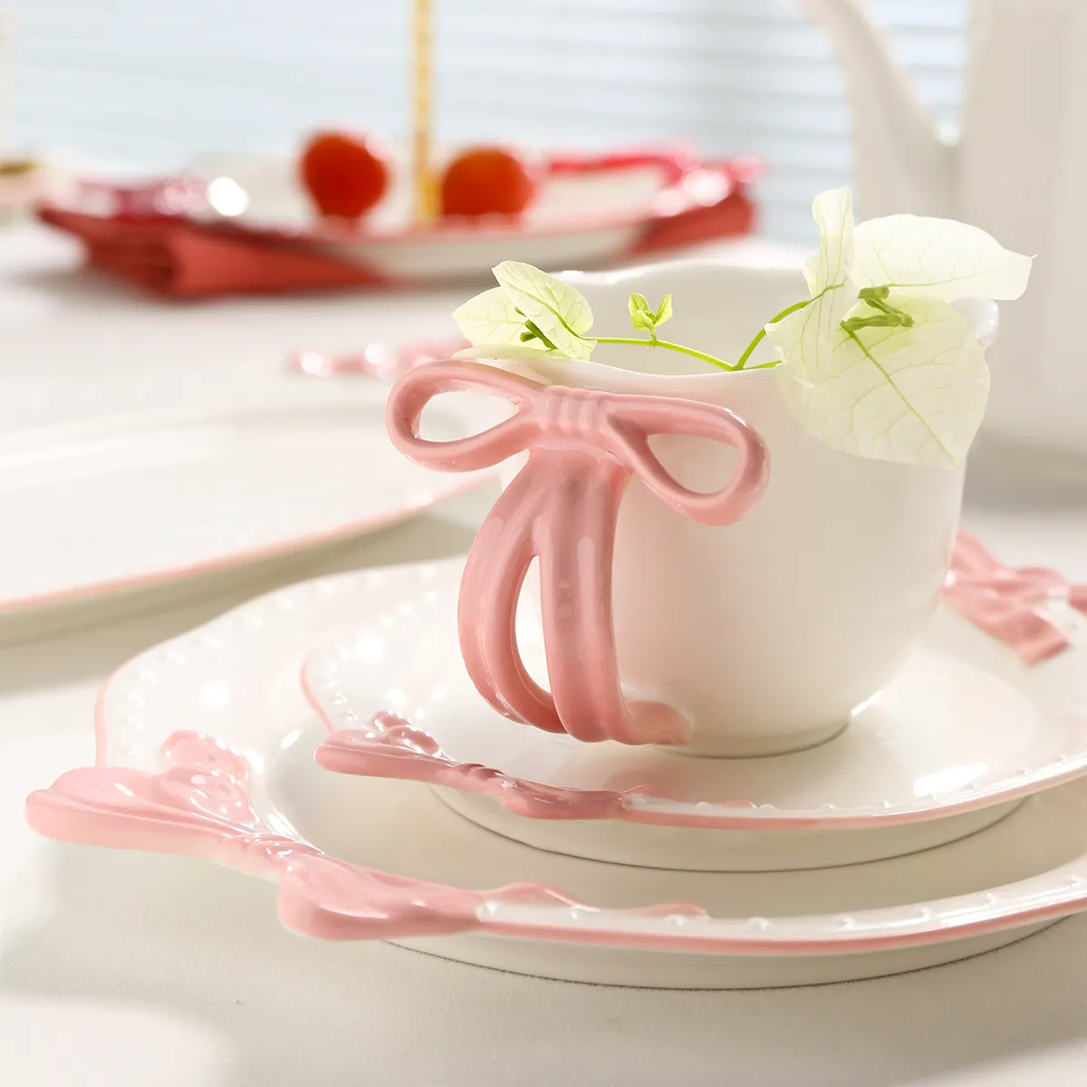 • Exquisite 3D Design: Our wholesale teapots and cups are decorated with 3D bow designs, featuring smooth lines and a delicate texture. The red/pink color options create a sweet and lovely visual effect, making them highly decorative.